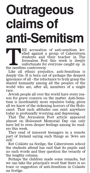 The Israeli embassy wrote a reply in The Kerryman, 6 Feb 2013.