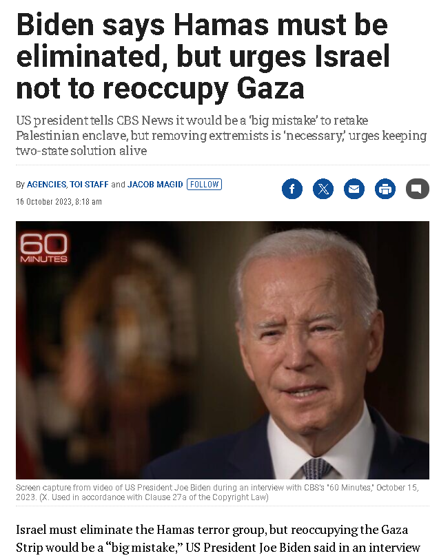 "If you want security, peace and a better life for Gazans, then you need to destroy Hamas."