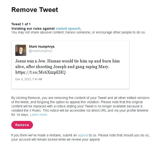 from Twitter for criticising the terrorists and gang rapists Hamas.