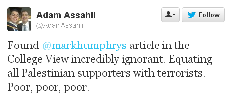 I was asked recently by a Palestinian-supporter on Twitter,
