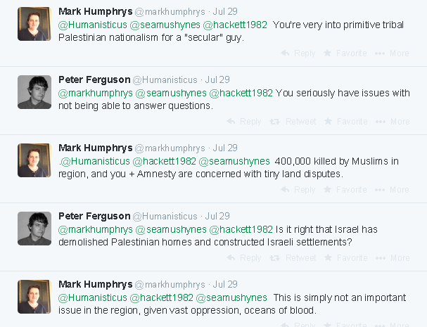 He's very into primitive tribal Palestinian nationalism for a "secular" guy.