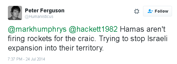 sums up the idiot view that Palestinian suicide bombers are "desperate".