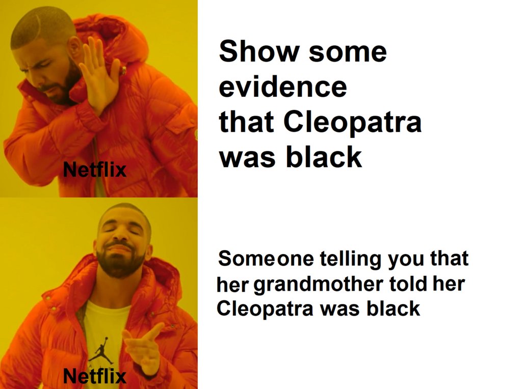 The trailer features a very strange academic called Shelley Haley saying: "I remember my grandmother saying to me: I don't care what they tell you in school. Cleopatra was black."
